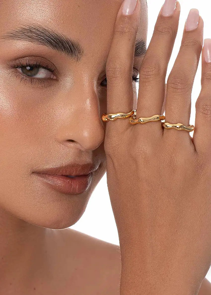 Kit de Anéis Zircônias Mar Ouro Vintage