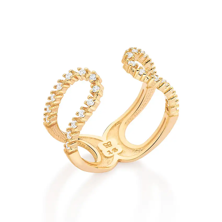 Promoção!Anéis | JOIA BANHADA OURO 18K | ANEL AJUSTÁVEL BANHADO A OURO 18K COM ZIRCÔNIAS – Rommanel