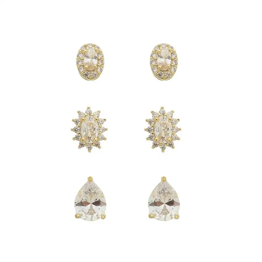 Promoção!Trio de Brincos Mary Zircônias Folheado a Ouro 18k