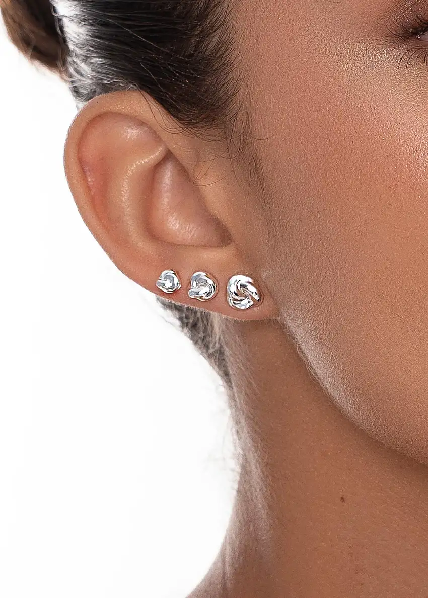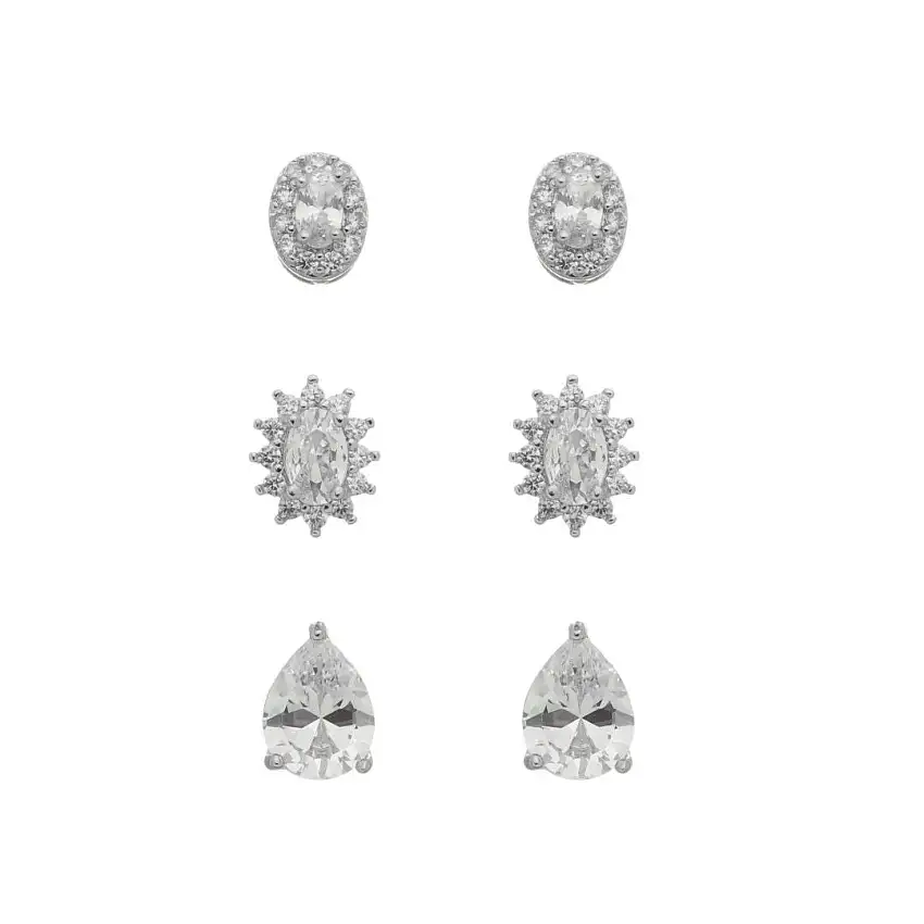 Promoção!Trio de Brincos Mary Zircônias Folheado em Ródio Branco