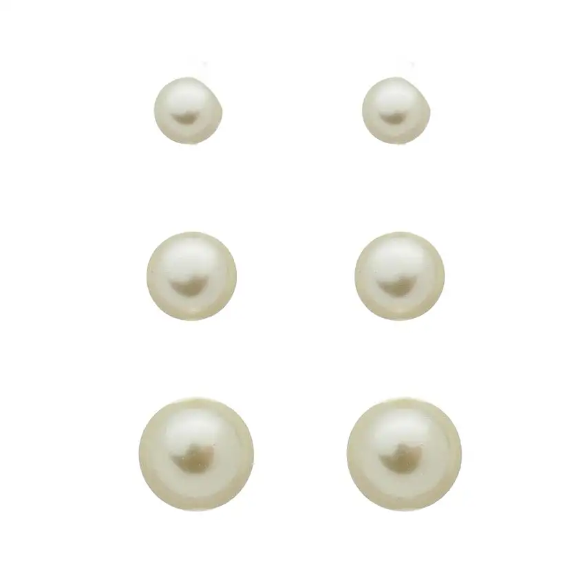 Promoção!Trio de Brincos Pérolas Folheado em Ródio Branco