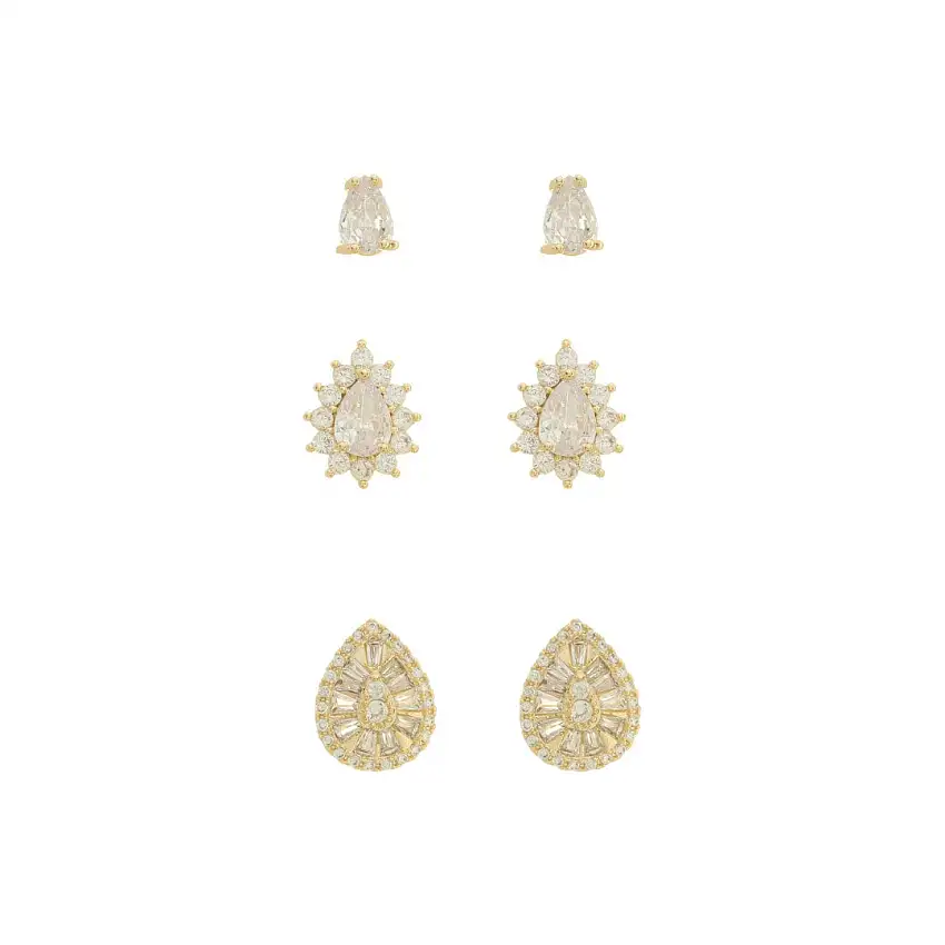 Promoção!Trio de Brincos Luara Gotas Zircônias Folheado a Ouro 18k