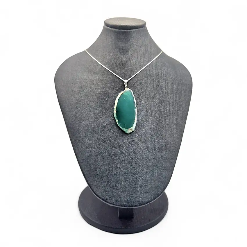 Promoção!Colar de Pedra Chapa de Ágata Verde Prata 925