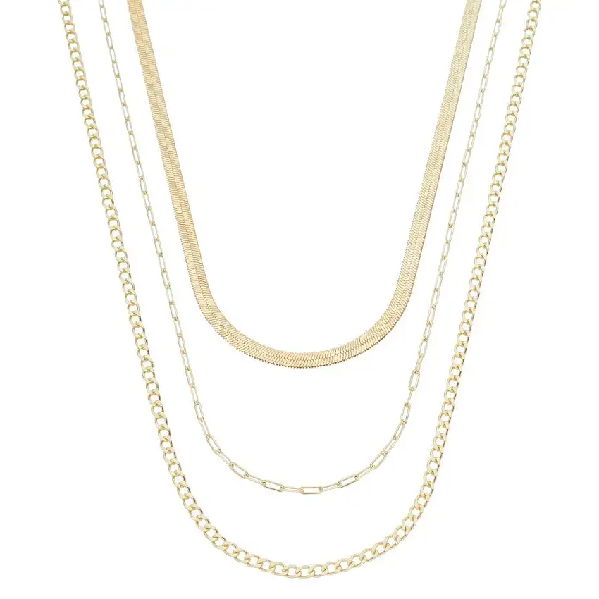 Promoção!Colar 3 Voltas Mariah Malha e Elos Folheado a Ouro 18k Piuka