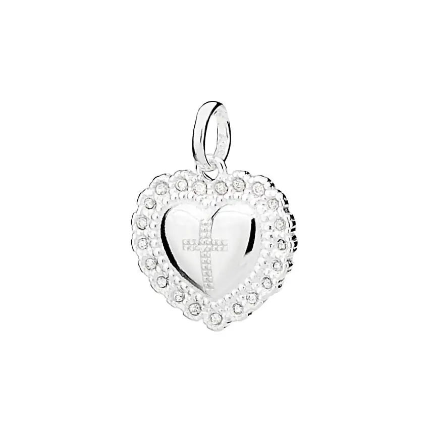 Pingentes | PRATA | PINGENTE CORAÇÃO COM CRUZ DE PRATA 925 COM ZIRCÔNIAS – Rommanel