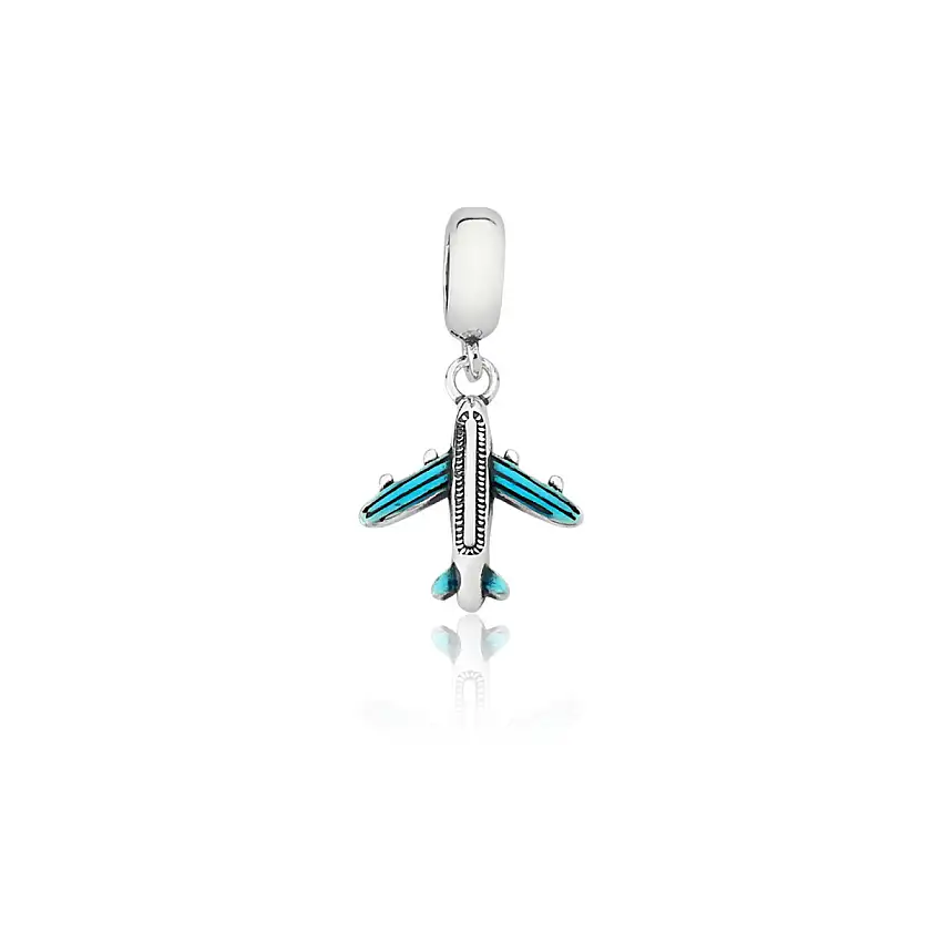Promoção!Berloque Prata c/ Ródio You Argola Avião c/ Detalhe Azul