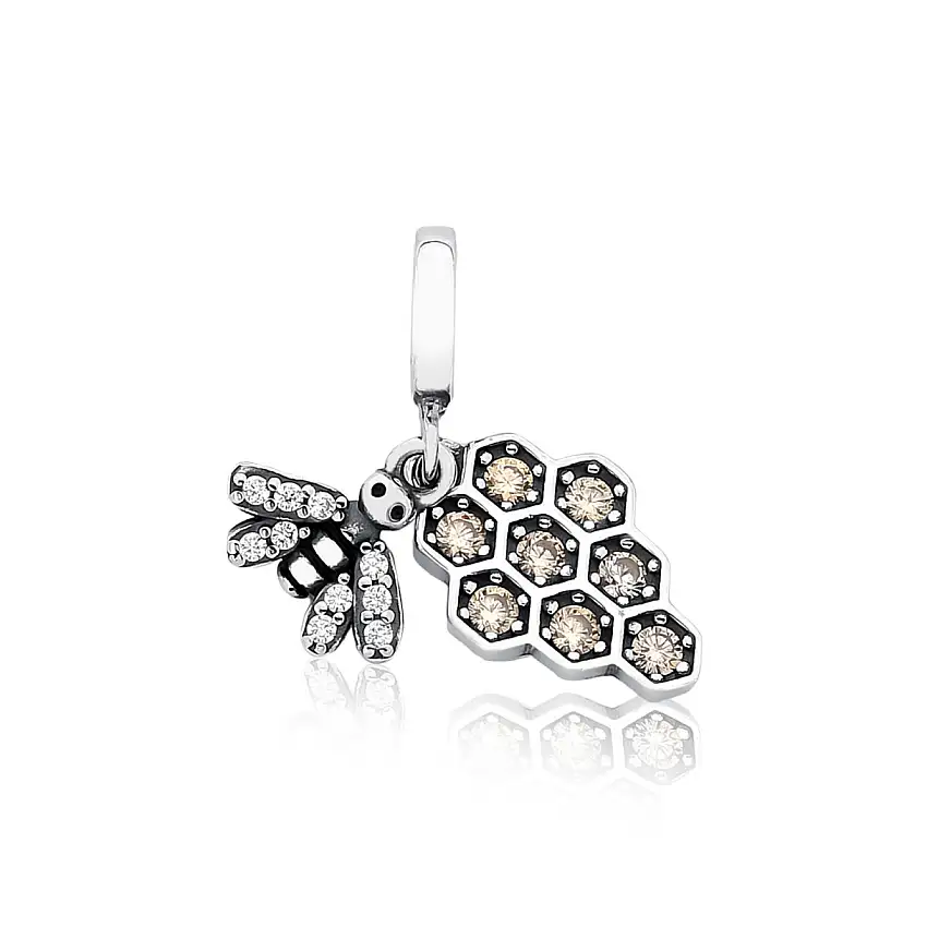 Promoção!Berloque Prata c/ Ródio You Argola Abelha e Colmeia Cravejadas