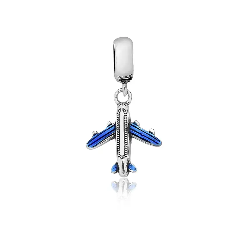 Berloque Prata c/ Ródio You Argola Avião Resina Azul