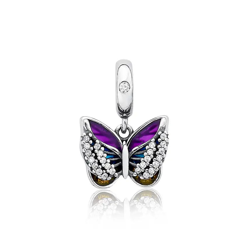 Berloque Prata c/ Ródio You Argola Borboleta Cravejada Resina Colorida