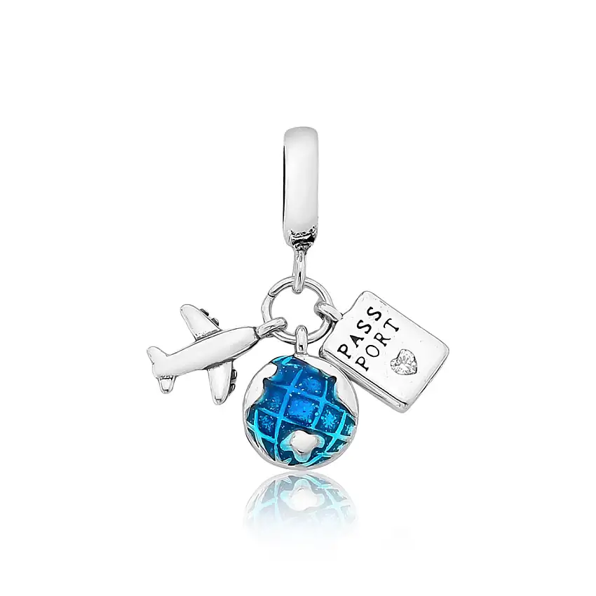 Berloque Prata c/ Ródio You Argola Avião Passaporte e Globo