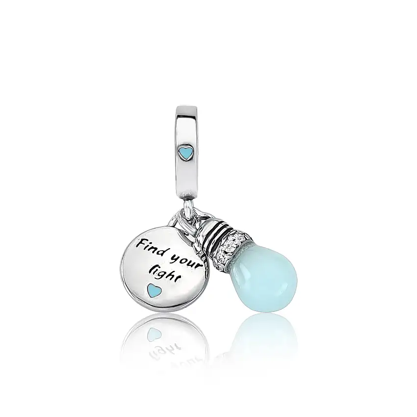 • Berloque Prata c/ Ródio You Argola c/ Lâmpada Azul e Placa