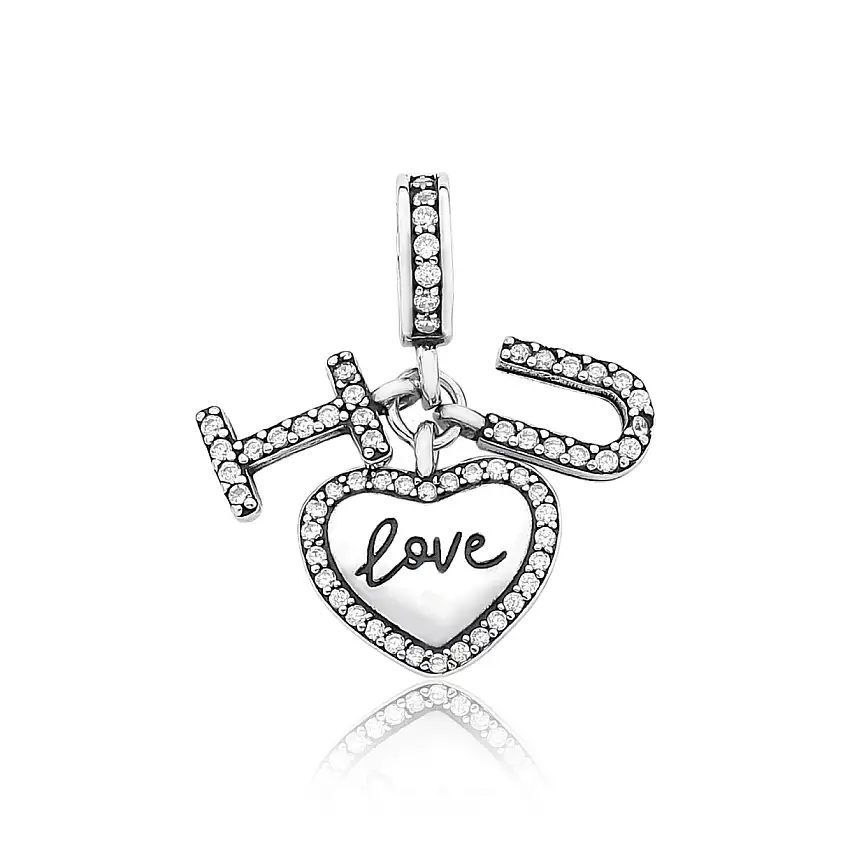 Berloque Prata c/ Ródio You Argola Cravejada “I Love You”