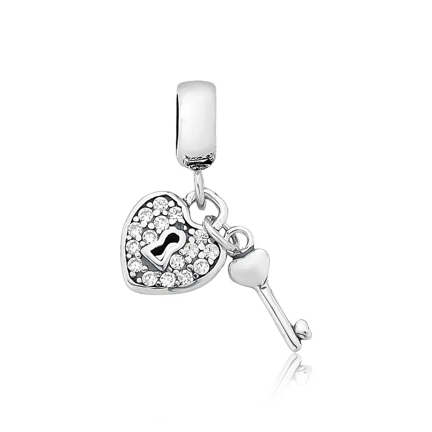 Berloque Prata c/ Ródio You Argola Coração Cravejado Fechadura e Chave