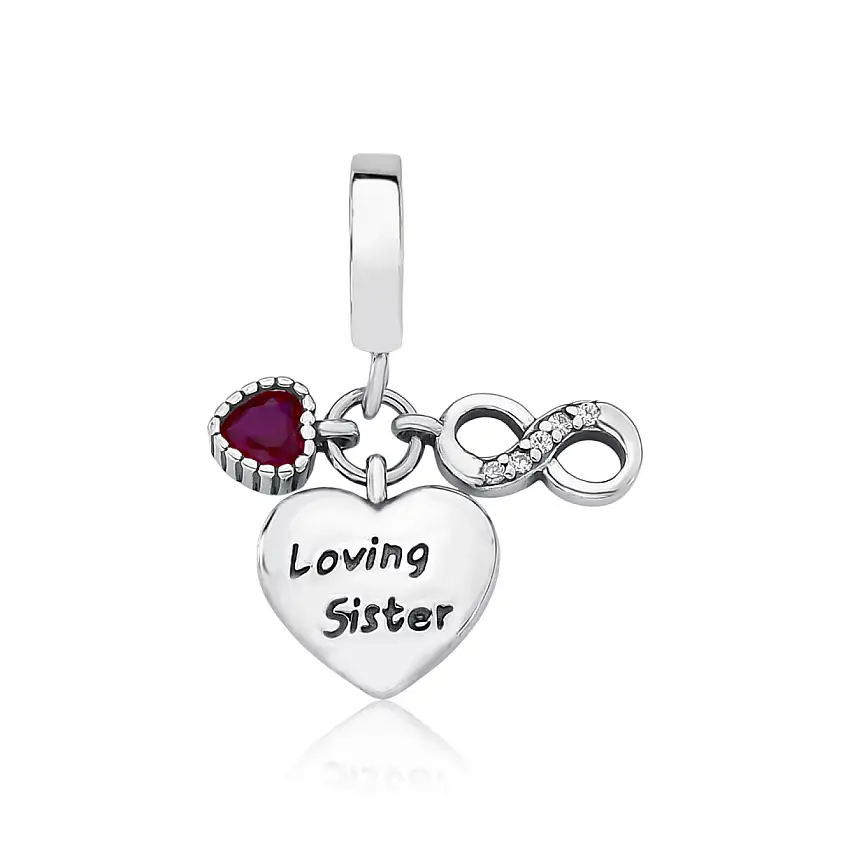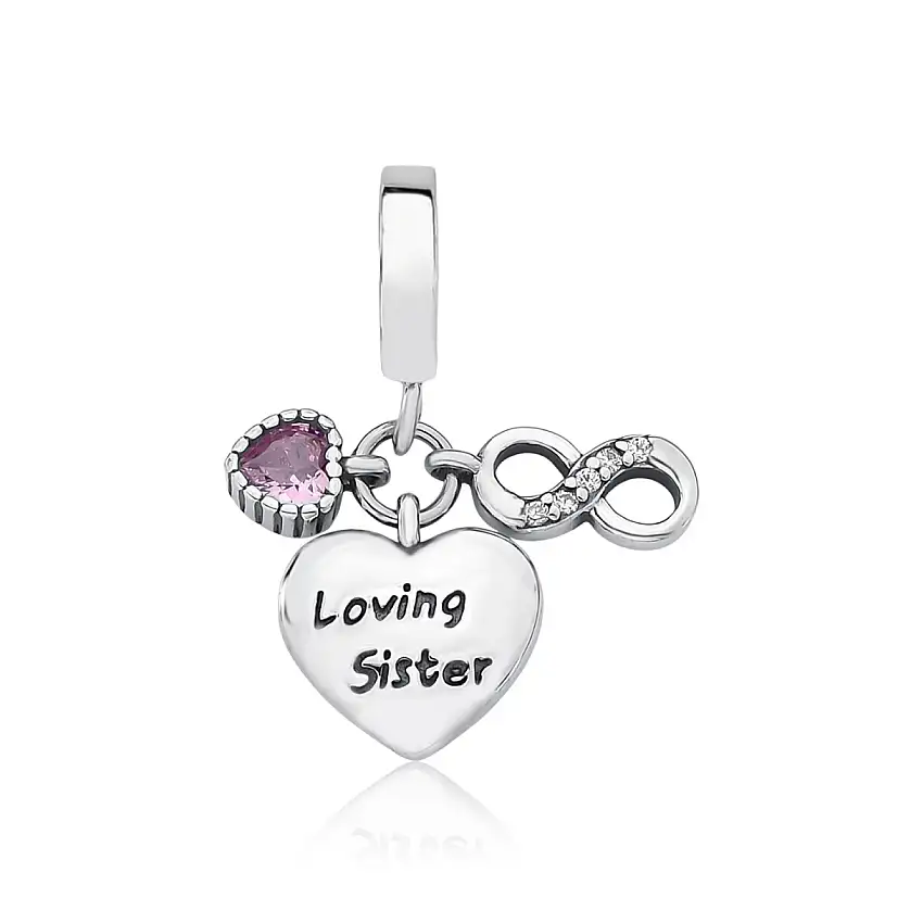 Berloque Prata c/ Ródio You Argola Coração “Loving Sister” e Infinito Cravejado e Coração Rosa