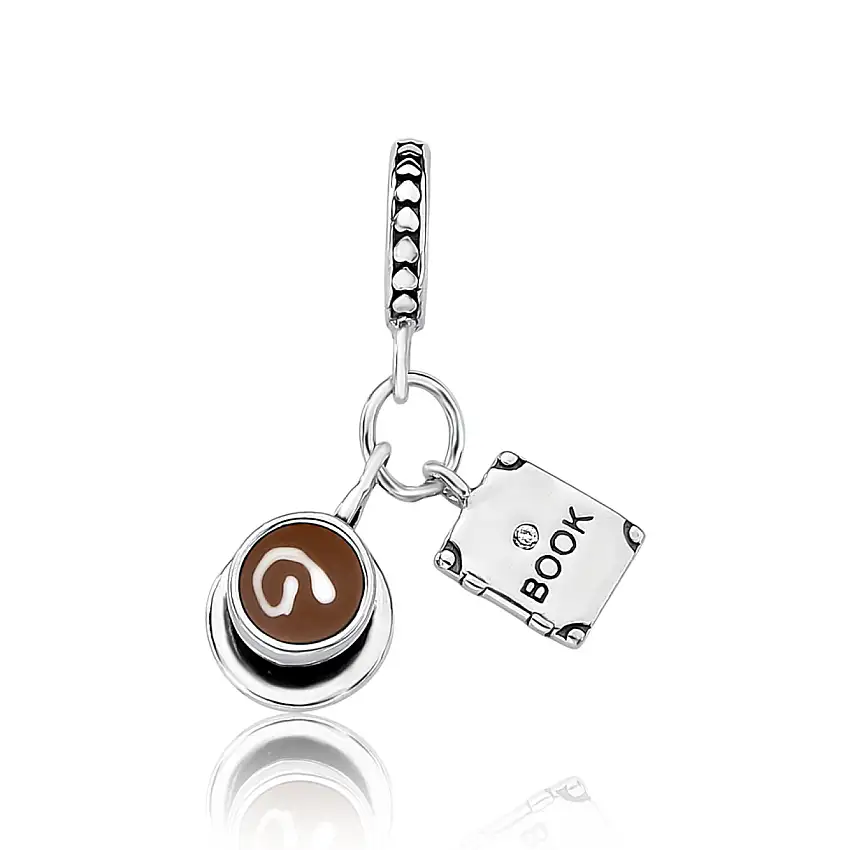 Berloque Prata c/ Ródio You Argola Café e Livro