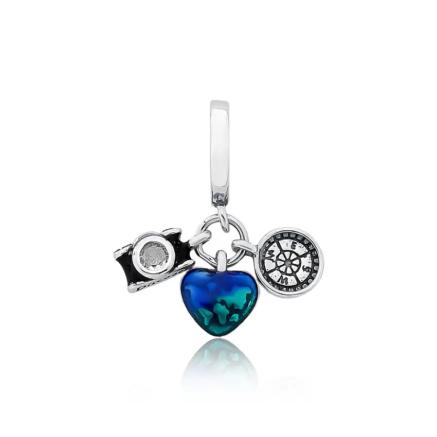Berloque Prata c/ Ródio You Argola Câmera/Coração/Bússola