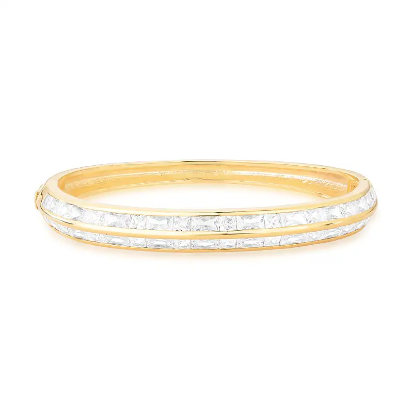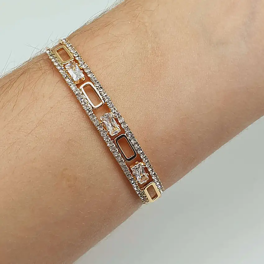 Bracelete Duas Fileiras Zircônia Baguete e Quadrada Folheado a Ouro 18k