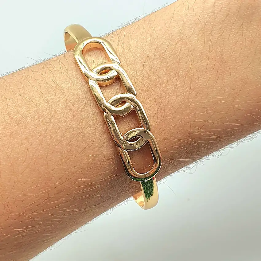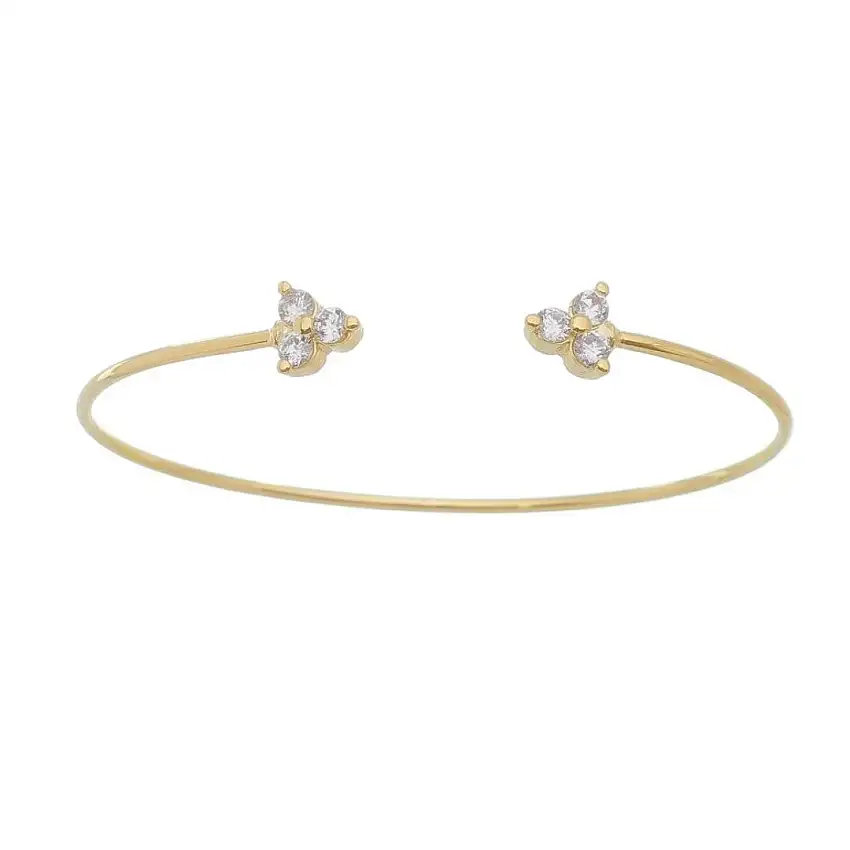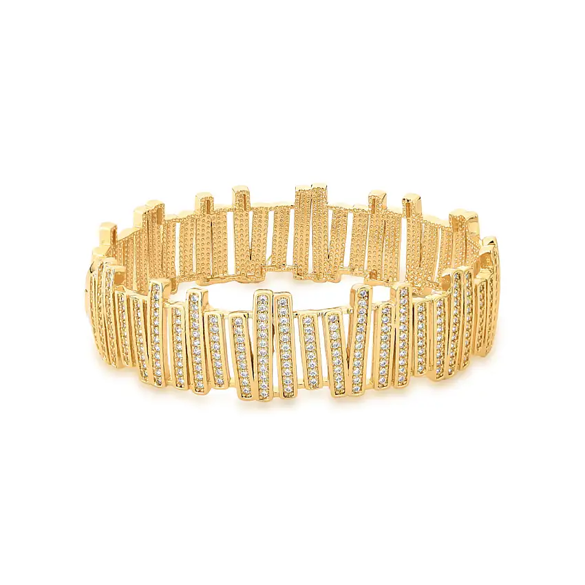Bracelete Fecho Click Fios Assimétricos Cravejados Folheado a Ouro 18k