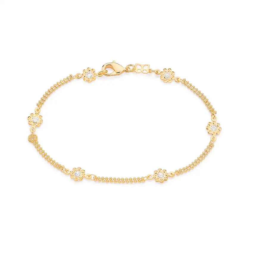Pulseiras | JOIA BANHADA OURO 18K | PULSEIRA FLORES BANHADO A OURO 18K COM ZIRCÔNIAS – Rommanel