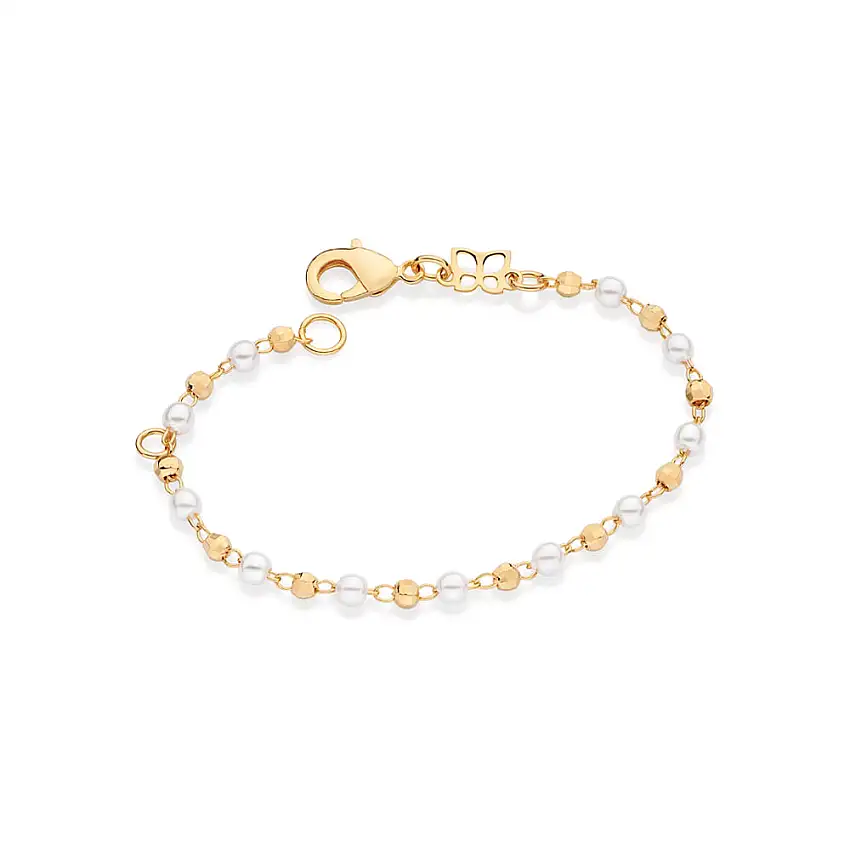 Promoção!Pulseiras | JOIA BANHADA OURO 18K | PULSEIRA INFANTIL BANHADA A OURO 18K COM ESFERAS E PÉROLAS SINTÉTICAS – Rommanel