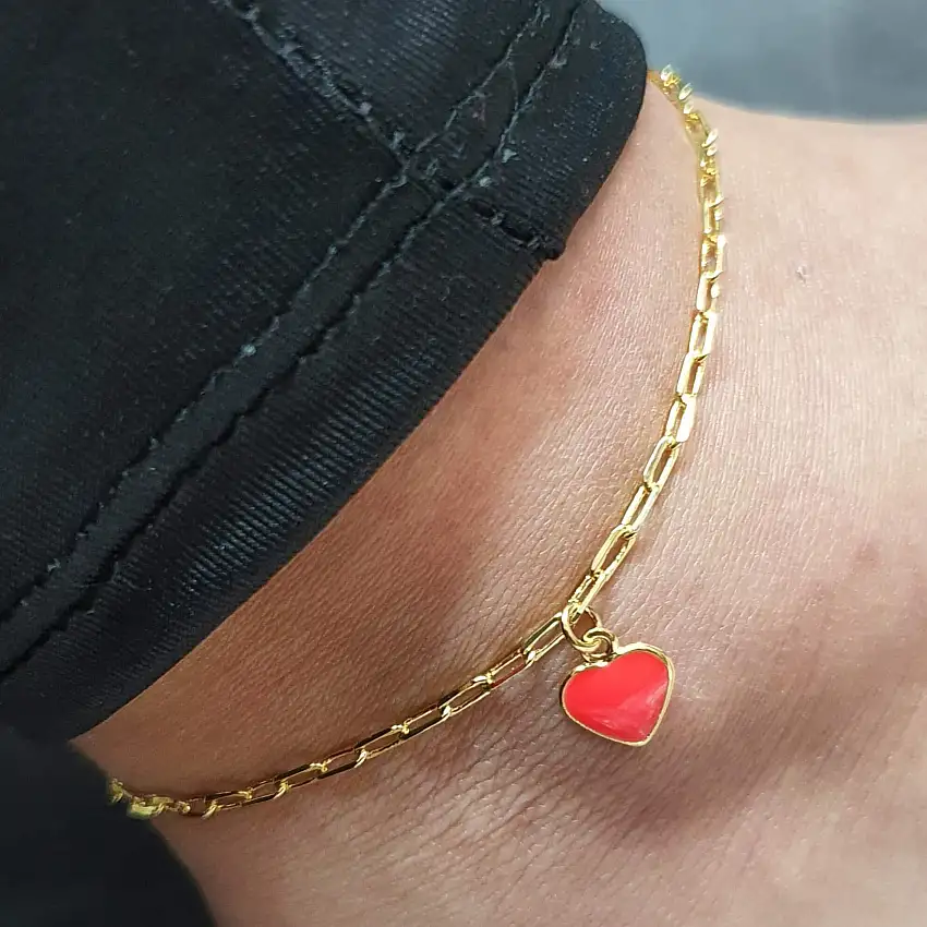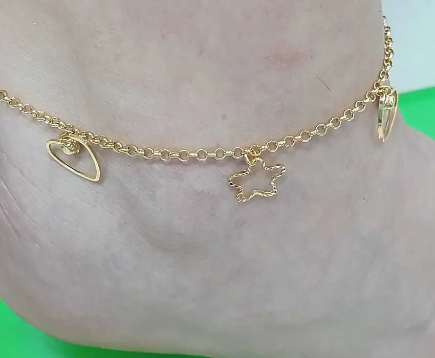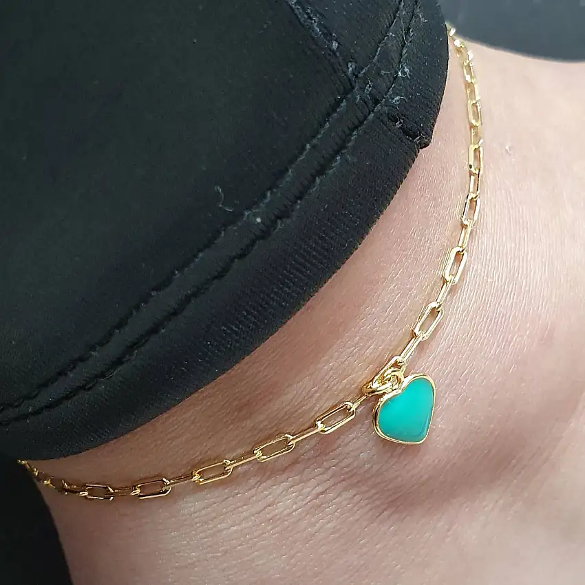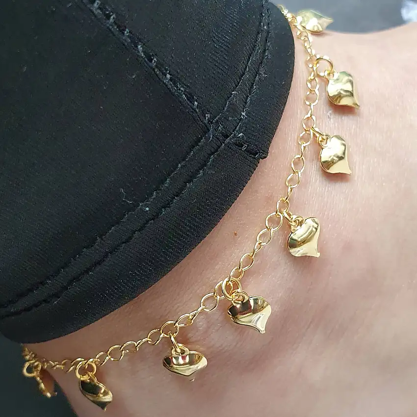 Promoção!Tornozeleira Folheada Dourada Coração Acqua