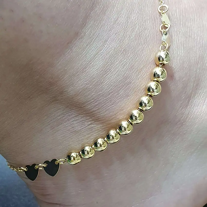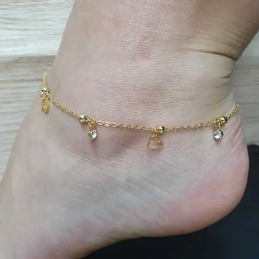 Promoção!Tornozeleira Folheada Dourada Coração e Esferas