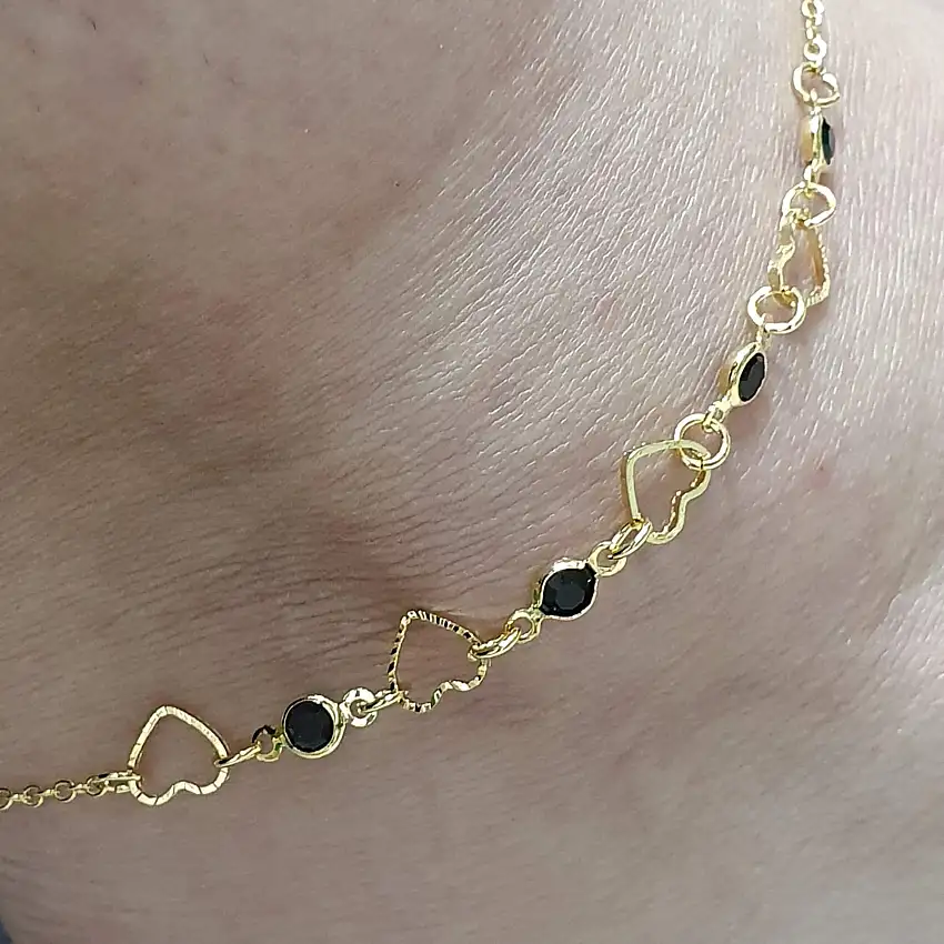 Promoção!Tornozeleira Folheada Dourada Coração Preto