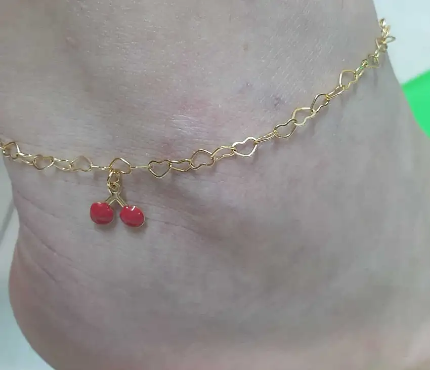 Promoção!Tornozeleira Folheada Dourada Cereja Vermelha