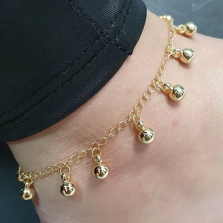 Promoção!Tornozeleira Folheada Dourada Esferas
