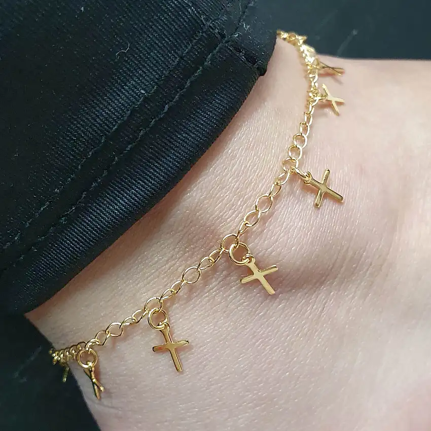 Promoção!Tornozeleira Folheada Dourada Cruz