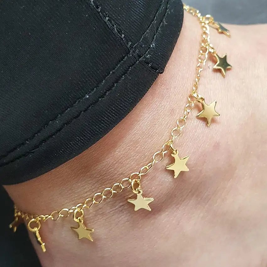 Promoção!Tornozeleira Folheada Dourada Estrelas