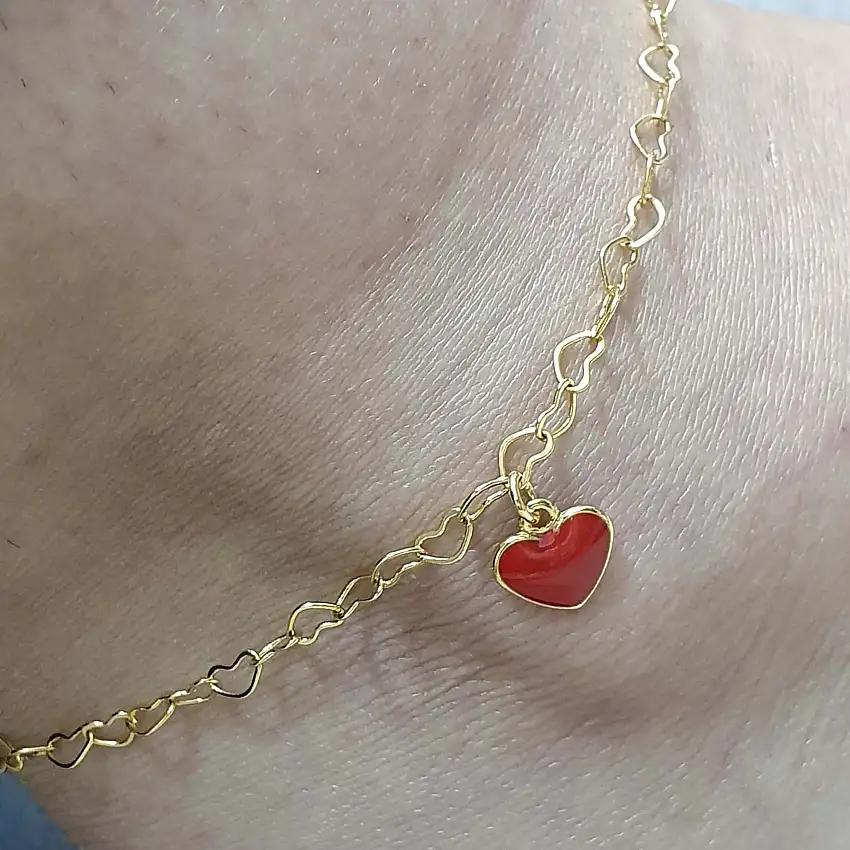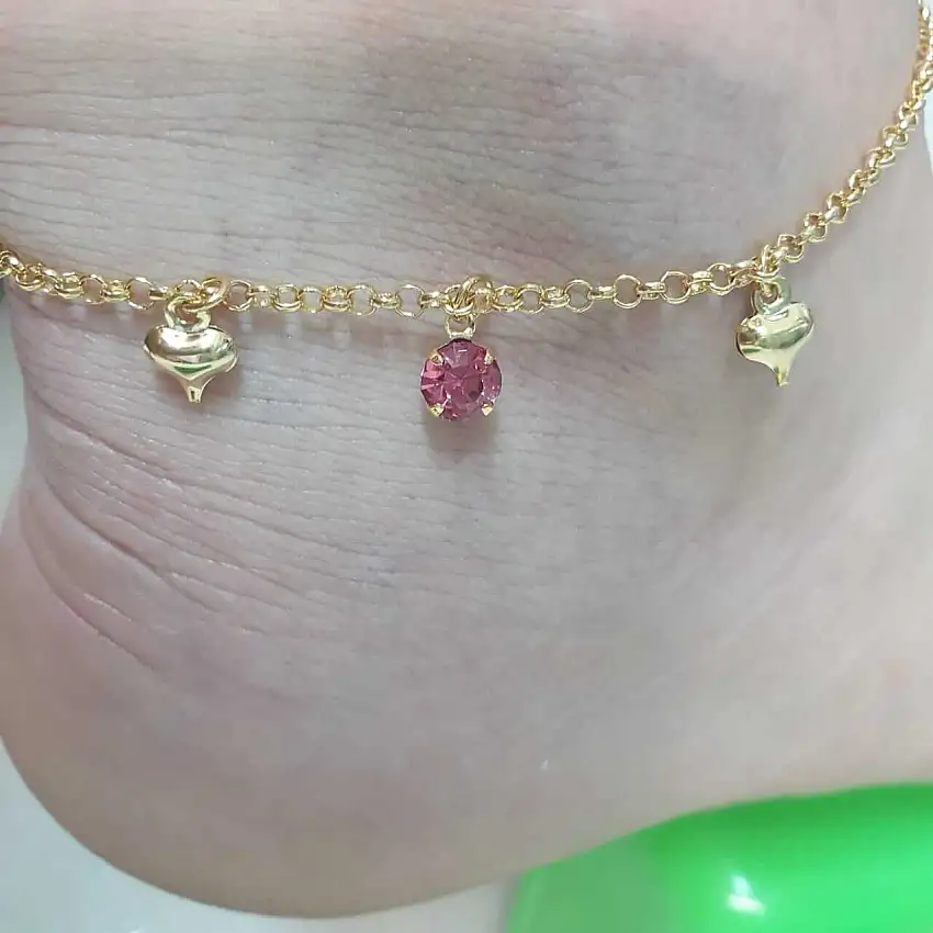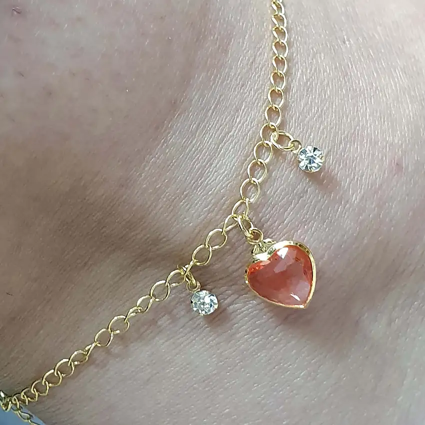 Promoção!Tornozeleira Folheada Dourada Coração Vinho