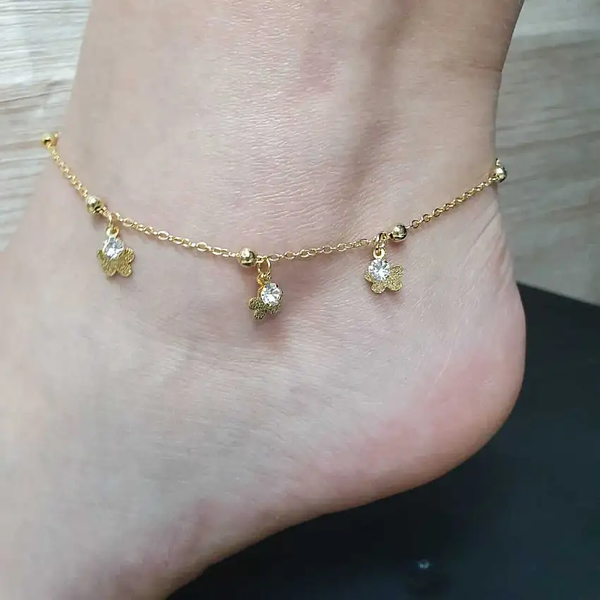 Promoção!Tornozeleira Folheada Dourada Flor Pontos de Luz