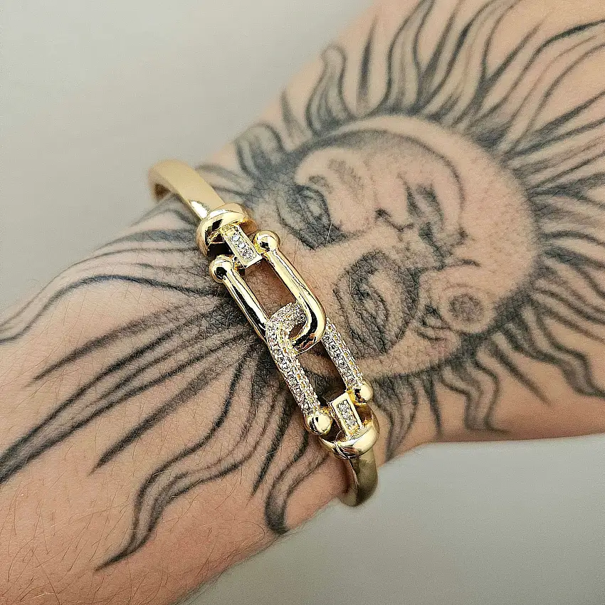 • Bracelete Cravejado Em Zircônia Detalhado Dourado