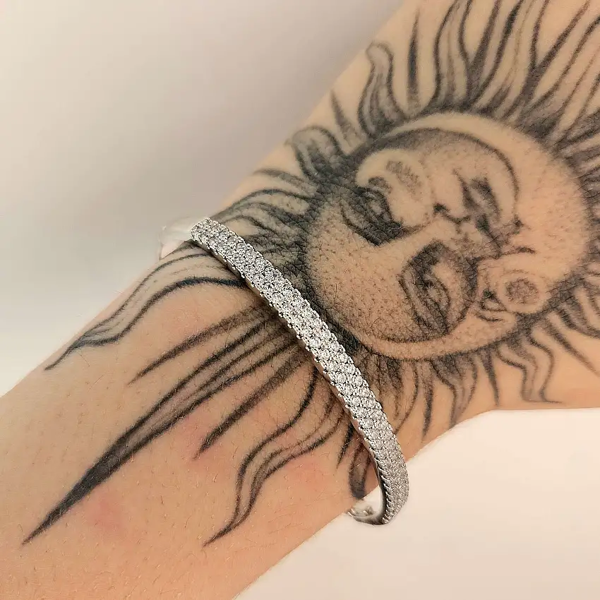 • Bracelete Com Zircônias Cravação Inglesa Folheado Prata 1000