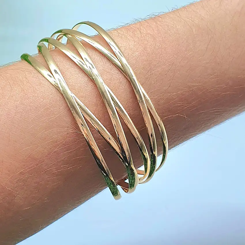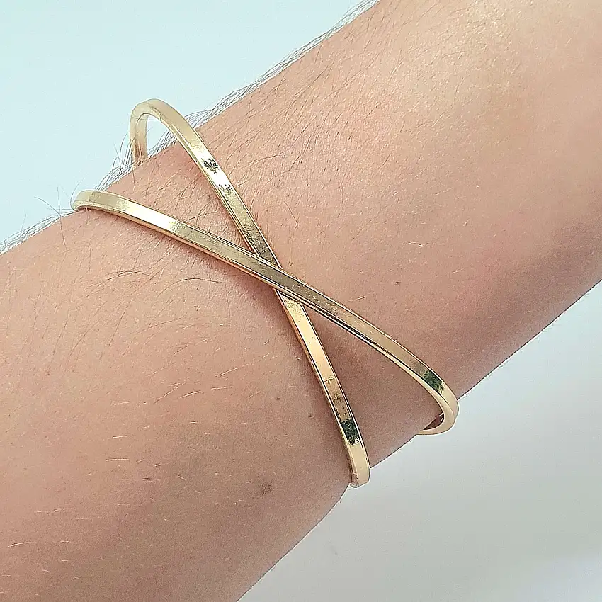 • Bracelete Detalhe Formato V Cravejado Zircônias Folheado a Ouro 18k