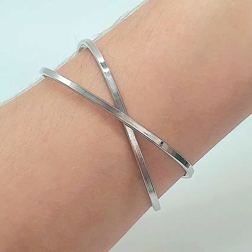 Bracelete Detalhe Elo Alongado e Zircônias Folheado Prata 1000