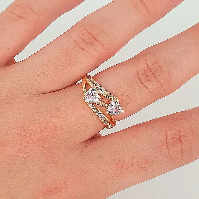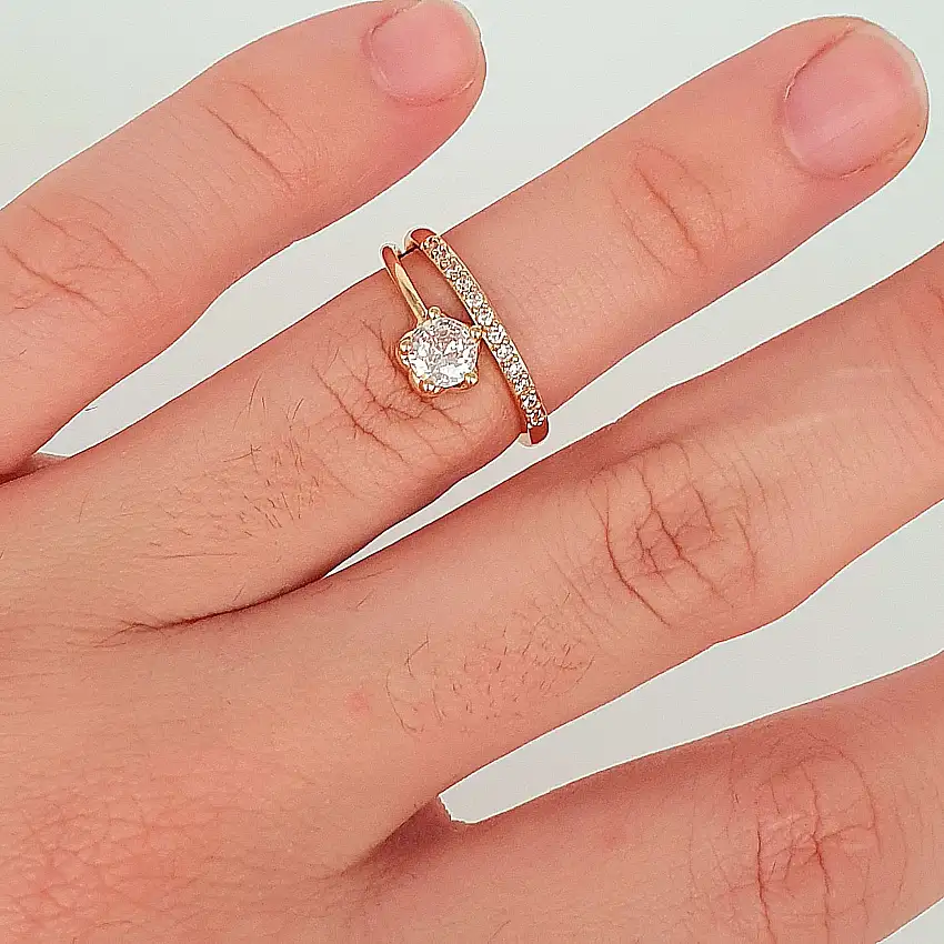 • Anel Com Zircônia Cravejada Ponto De Luz Dourado