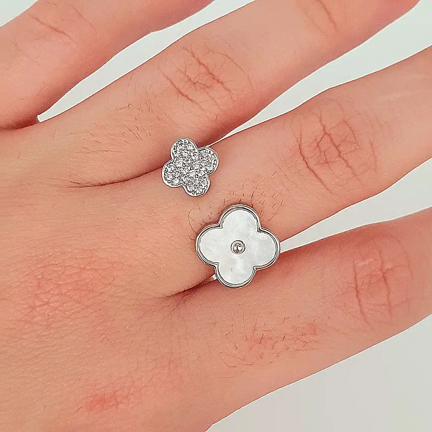 • Anel Com Zircônia Cravejada Trevo Prata Branco