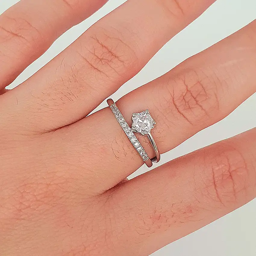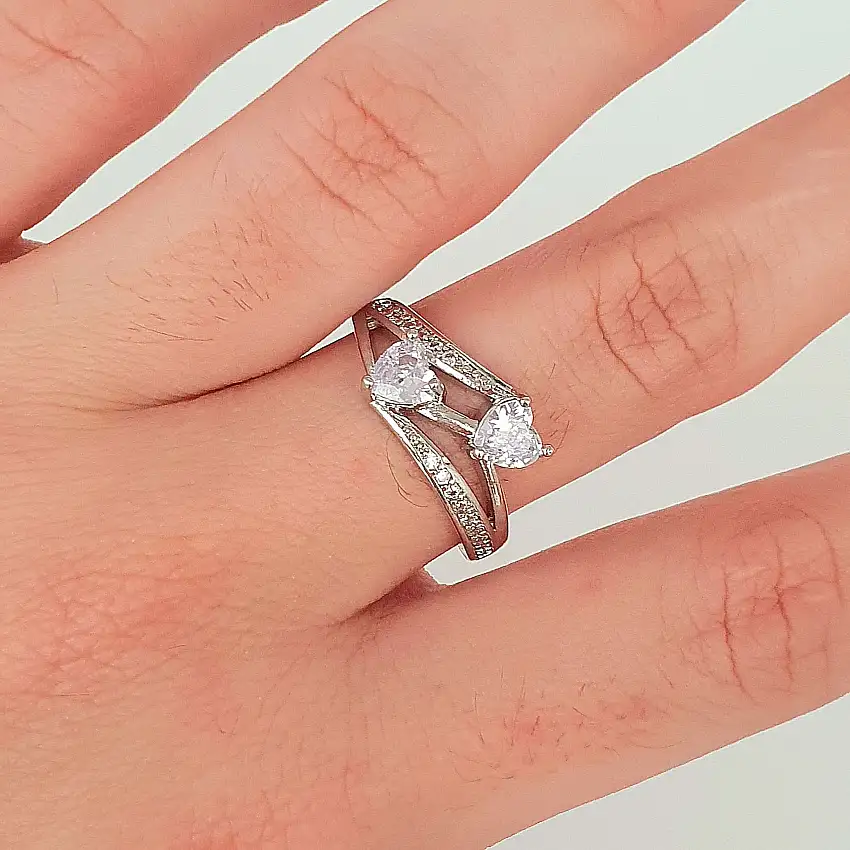 • Anel Com Zircônia Cravejada Ponto De Luz Prata