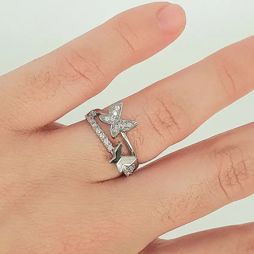Anel Com Zircônia Cravejada Trevo Prata Branco