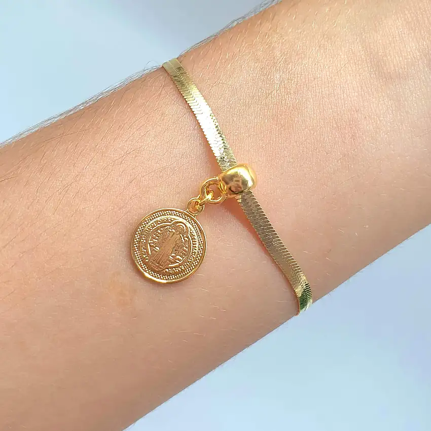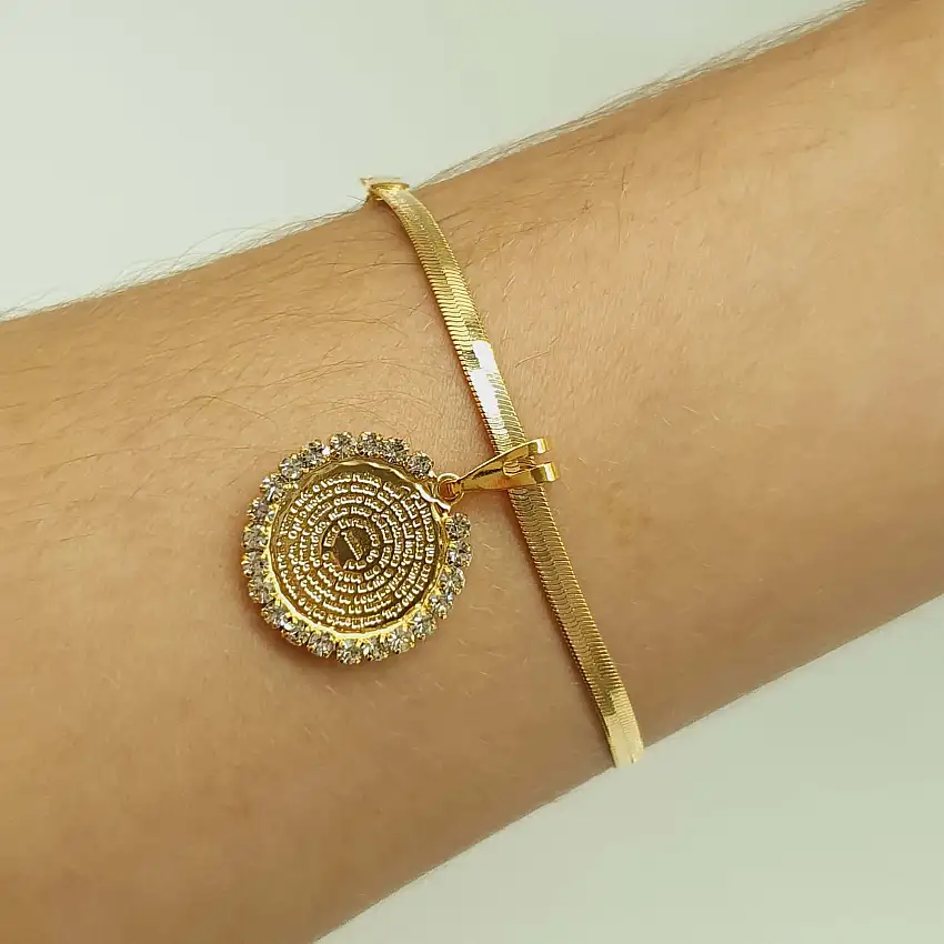 Promoção!Pulseira Laminada Folheada A Ouro 18K Medalha Religiosa