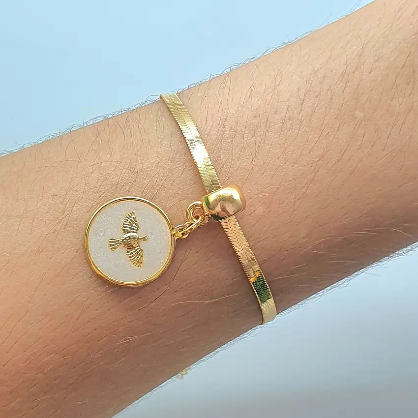 Promoção!Pulseira Laminada Folheada A Ouro 18K Pomba Da Paz