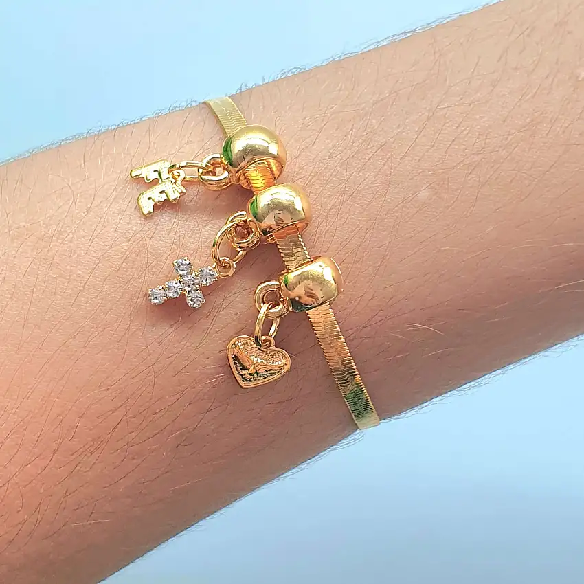Promoção!Pulseira Laminada Folheada A Ouro 18K Pingentes Religiosos