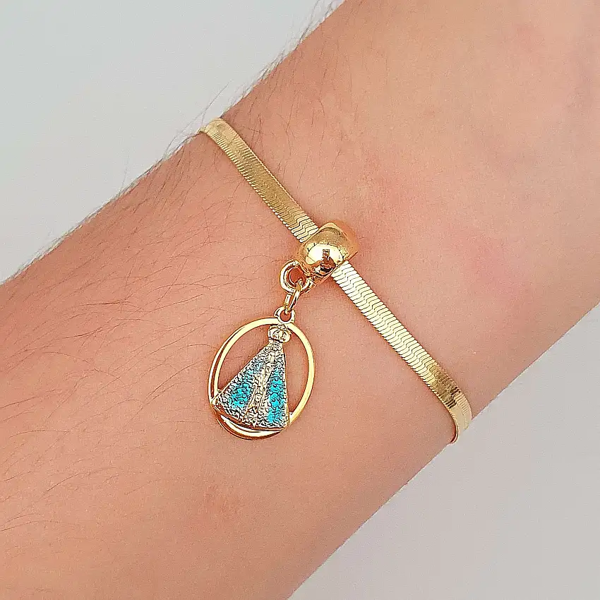 Promoção!Pulseira Laminada Folheada A Ouro 18K Nossa Senhora Aparecida