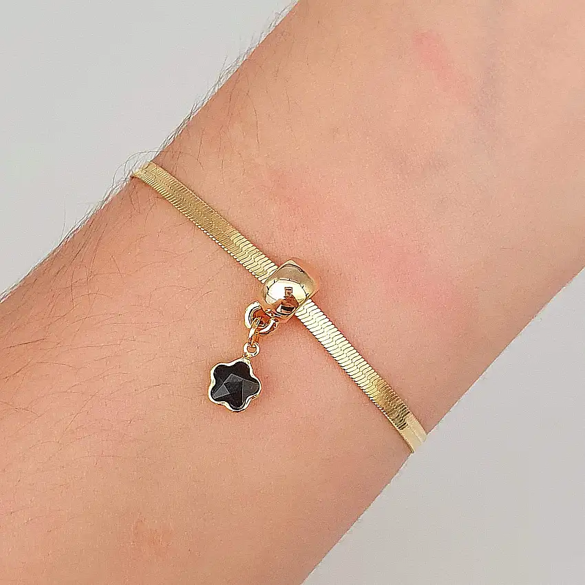 Promoção!Pulseira Laminada Folheada A Ouro 18K Florzinha Preta
