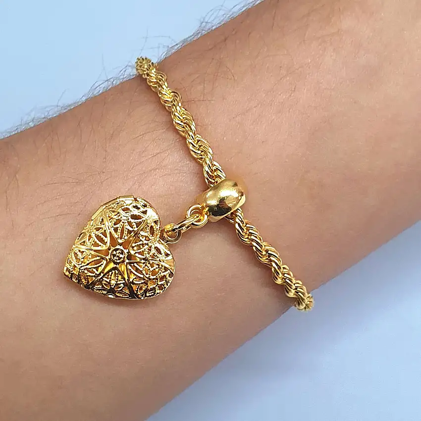 Promoção!Pulseira Relicário Folheada A Ouro 18K Baiana Com Coração