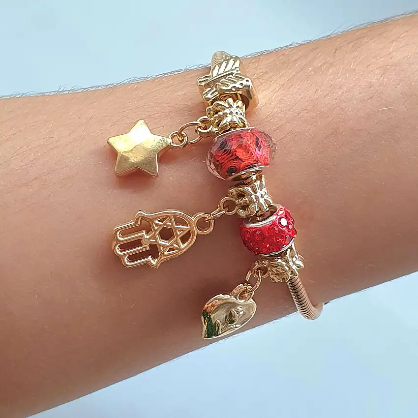 Promoção!Pulseira Pandora Com Berloques Dourada