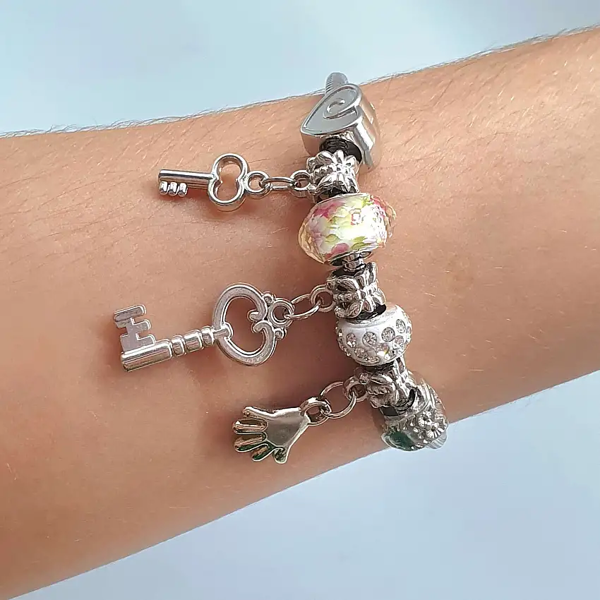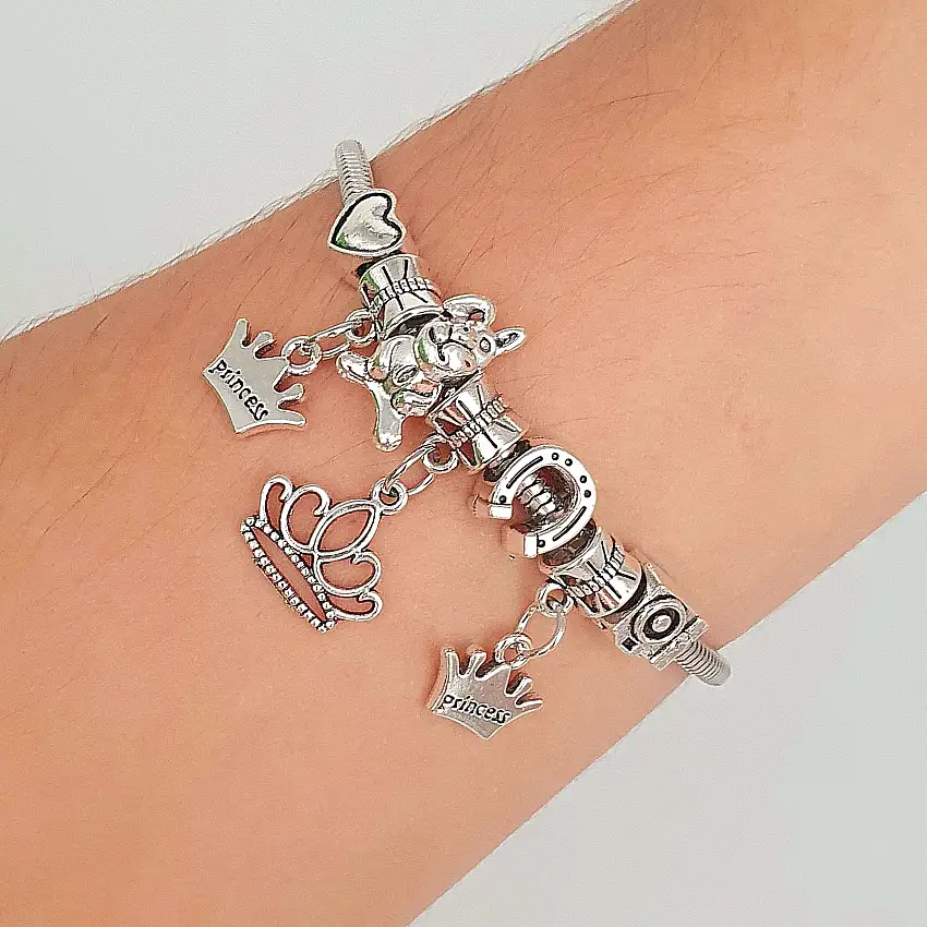 Promoção!Pulseira Pandora Com Berloques Prata Sortidos