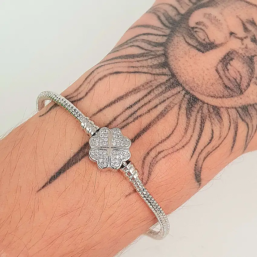Promoção!Pulseira Pandora Com Berloque Cravejada Em Zircônia Prata Trevo
